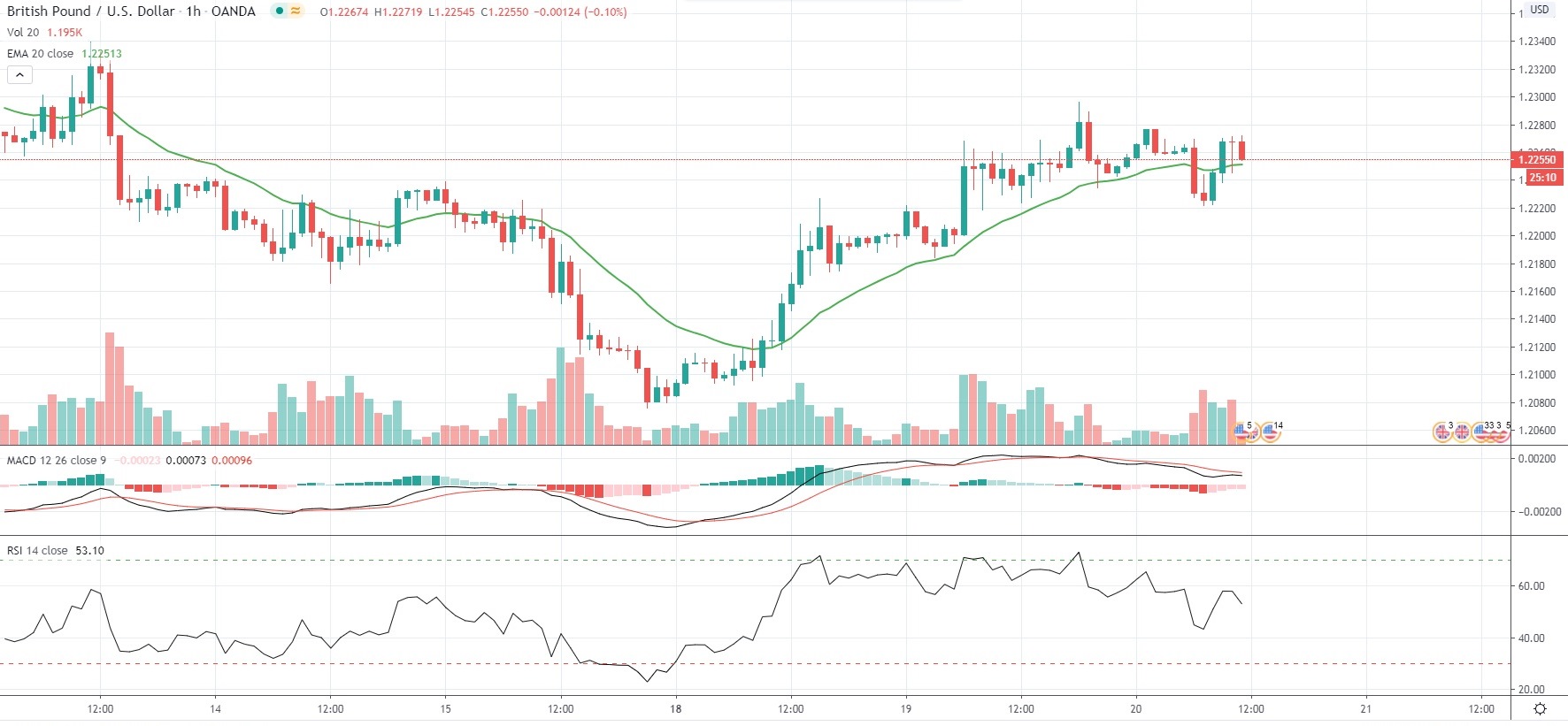 As of 11:33 GMT on Wednesday GBP/USD was edging up 0.06% to trade at 1.2258, after touching an intraday low of 1.2222 during the early phase of the European session.