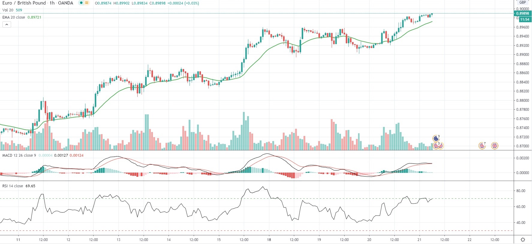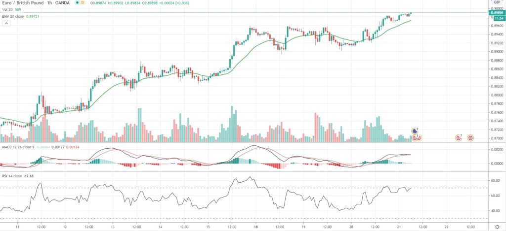 As of 6:44 GMT on Thursday EUR/GBP was gaining 0.20% to trade at 0.8988, after touching an intraday high of 0.8990, or a level not seen since March 27th (0.9093).