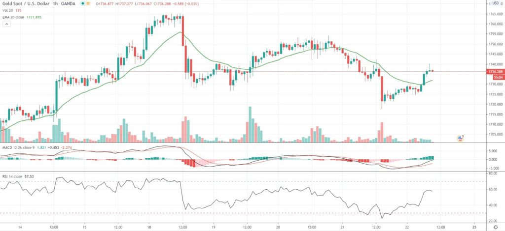At 9:32 GMT today Spot Gold was gaining 0.37% to trade at $1,733.49 per troy ounce, after touching an intraday high of $1,740.23. Meanwhile, Gold futures for delivery in June were gaining 0.75% on the day to trade at $1,734.75 per troy ounce, while Silver futures for delivery in July were up 0.47% to trade at $17.445 per troy ounce.