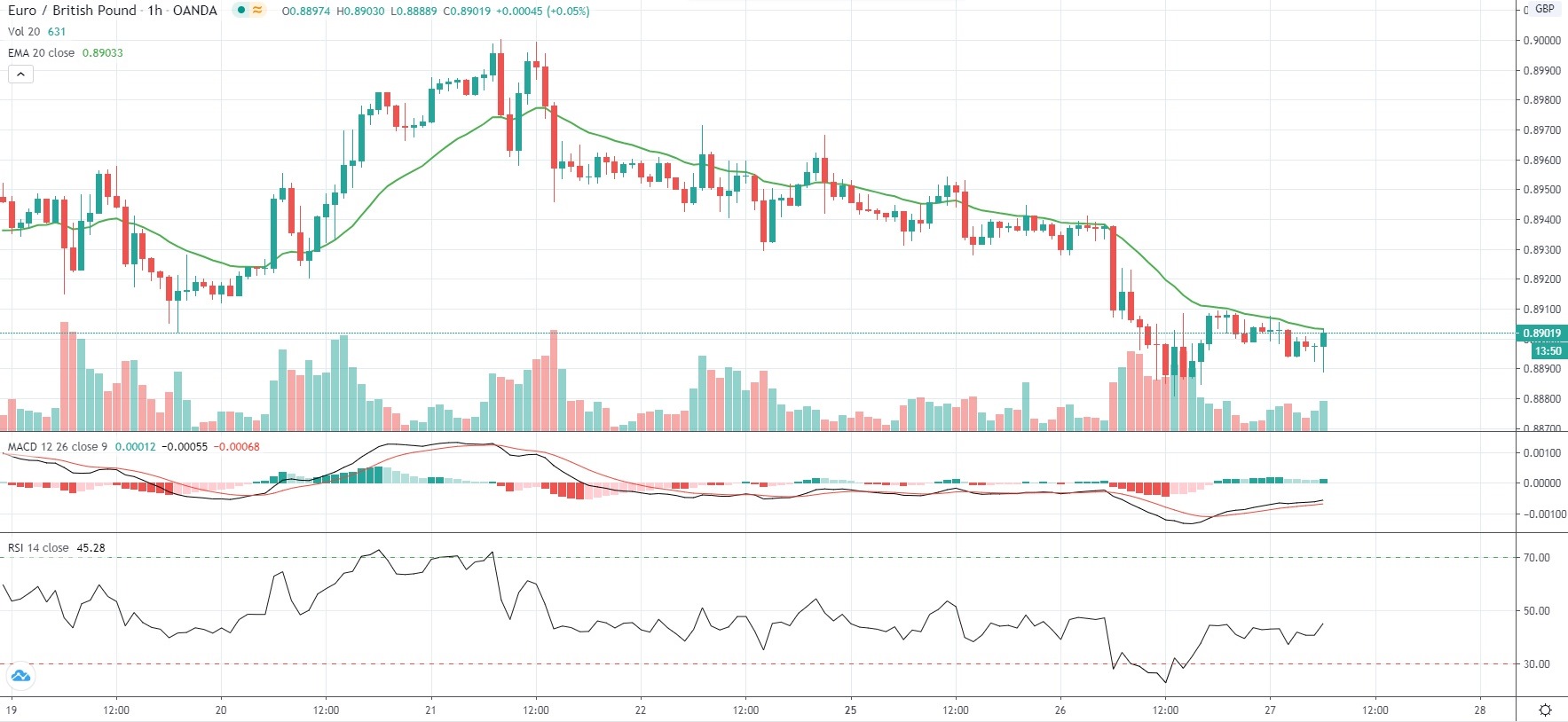 As of 6:44 GMT on Wednesday EUR/GBP was inching down 0.01% to trade at 0.8901, after touching an intraday low of 0.8889, a level not far from the low registered a day ago.