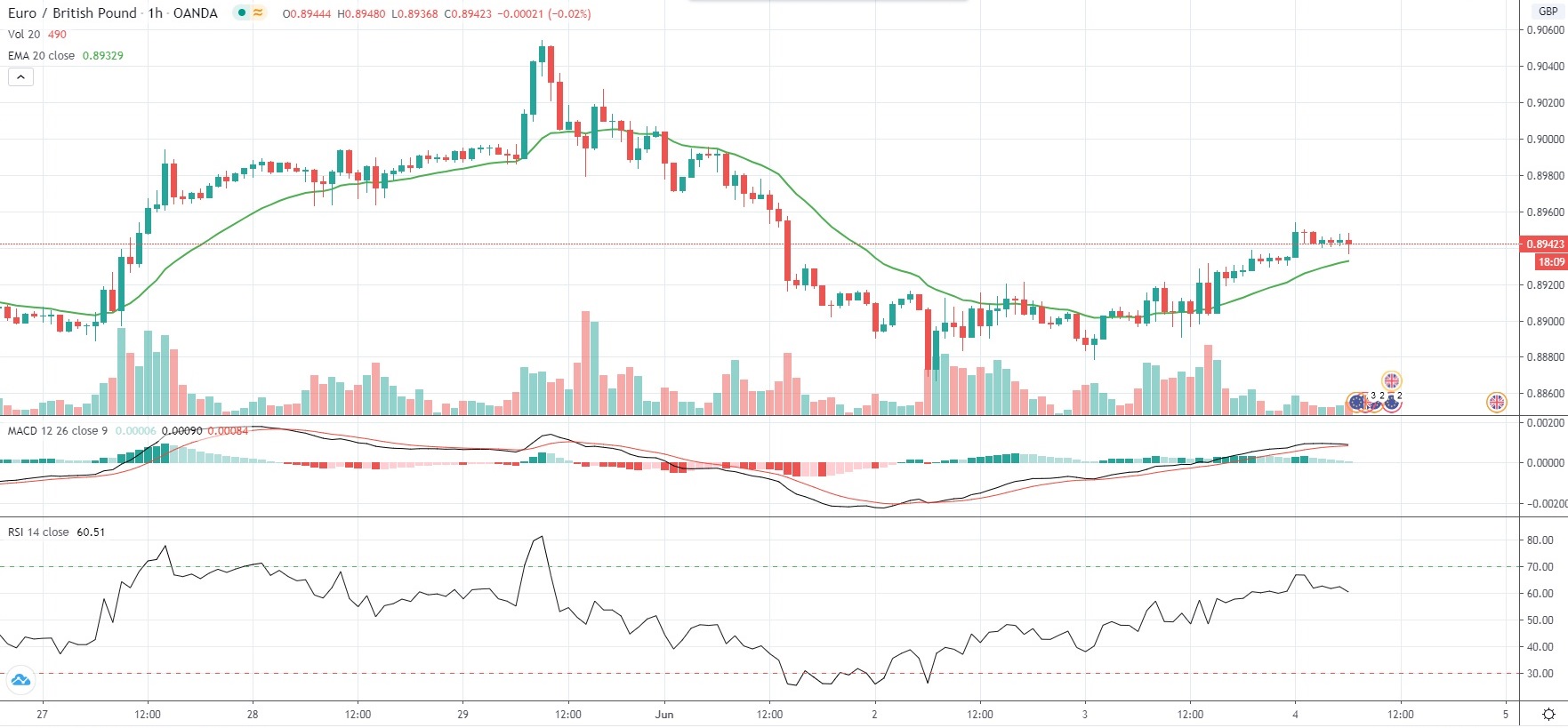 As of 6:50 GMT on Thursday EUR/GBP was edging up 0.12% to trade at 0.8944, after touching an intraday high of 0.8954 during early Asian session, or a level not seen since June 1st (0.9007).