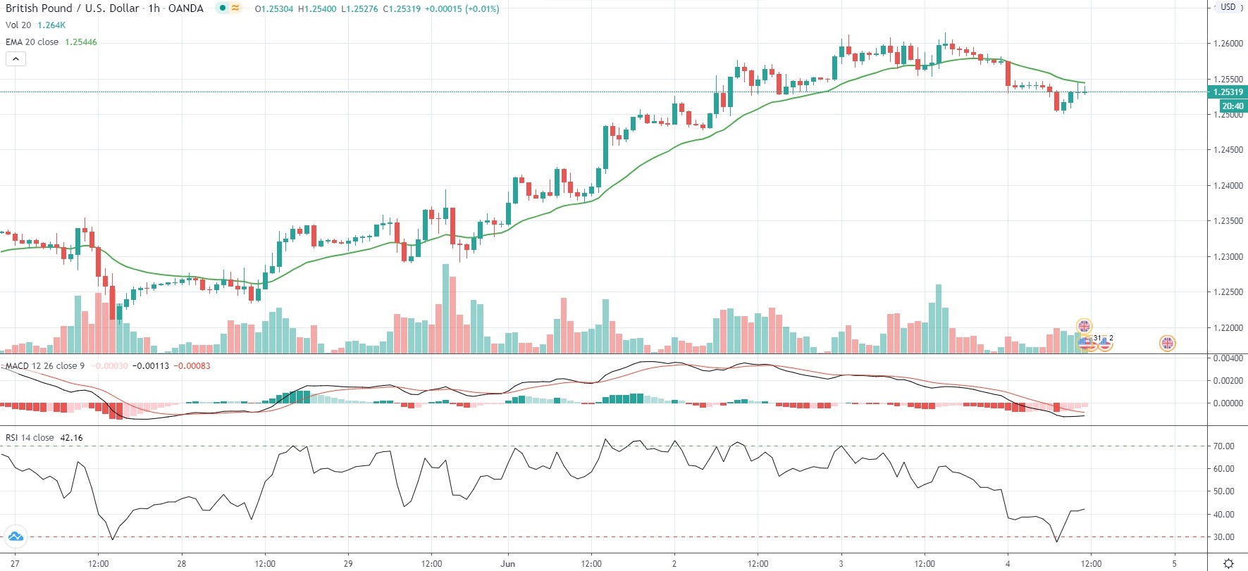 As of 11:44 GMT on Thursday GBP/USD was retreating 0.35% to trade at 1.2532, after touching an intraday low of 1.2501 during early European session, or a level not seen since June 2nd (1.2479).