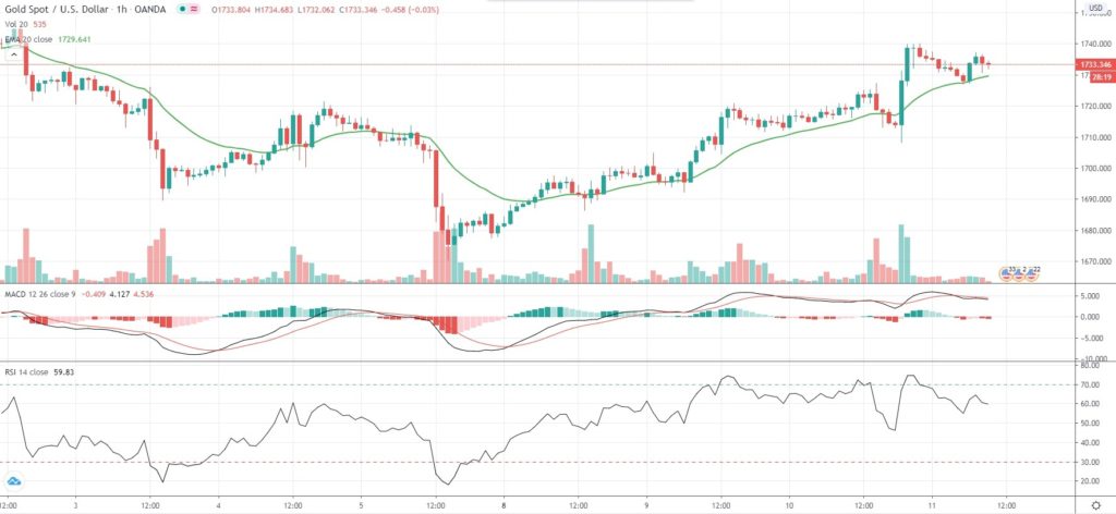 “We are seeing some profit-taking… But, gold has gotten through the $1,725 level, which suggests that we are in a pretty bullish format right now,” Stephen Innes, chief market strategist at AxiCorp, said.