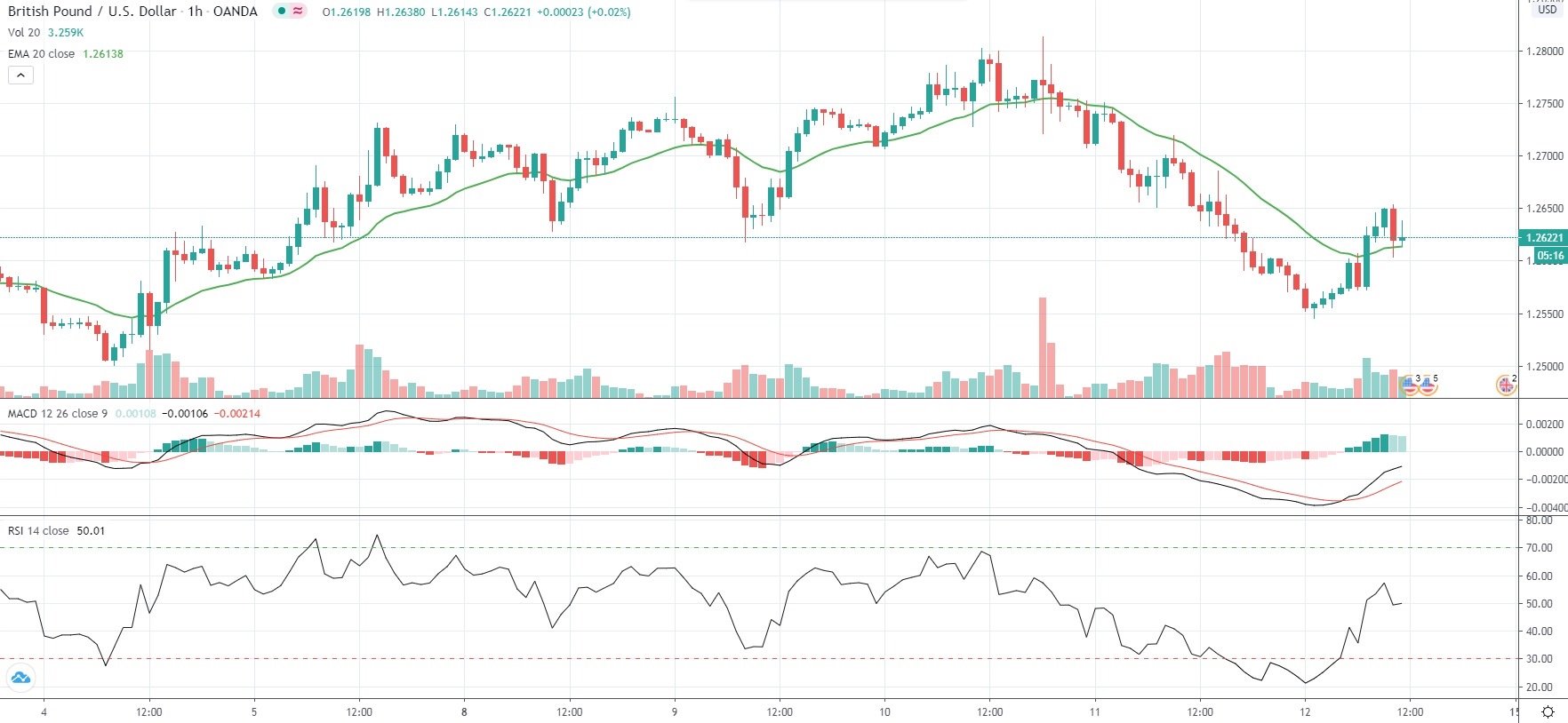 As of 11:53 GMT on Friday GBP/USD was edging up 0.18% to trade at 1.2624, after touching an intraday low of 1.2545 during early Asian session, or a level not seen since June 4th (1.2501).