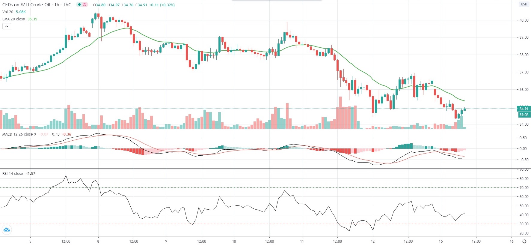 As of GMT 8:36 GMT on Monday, WTI Crude Oil Futures were retreating 2.59% to trade at $35.55 per barrel, after sliding to as low as $34.34, or a price level not seen since June 1st ($34.30). Last week US Oil lost 6.57%, while snapping a six-week streak of gains.