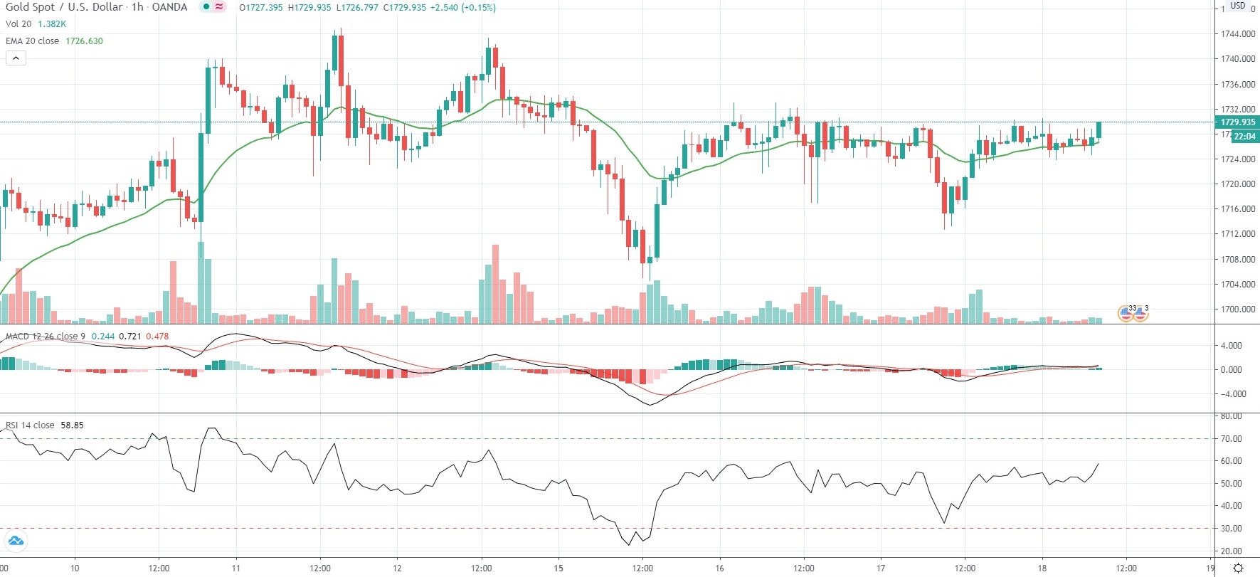 Today Gold traders will be expecting the outcome from Bank of England’s monetary policy meeting at 11:00 GMT. The bank is largely anticipated to leave the key bank rate at the record low level of 0.1% and to bolster its bond purchasing program by GBP 100 billion to GBP 745 billion.