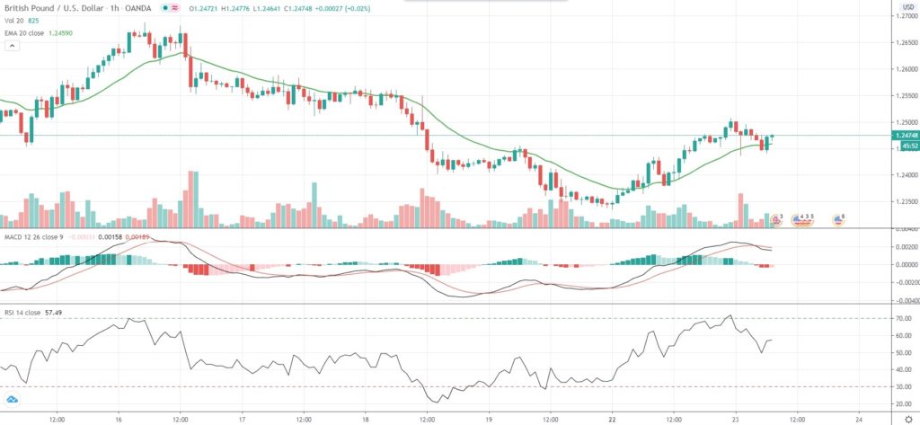 As of 6:43 GMT on Tuesday GBP/USD was inching down 0.04% to trade at 1.2465, after touching an intraday low of 1.2437 during early Asian session.