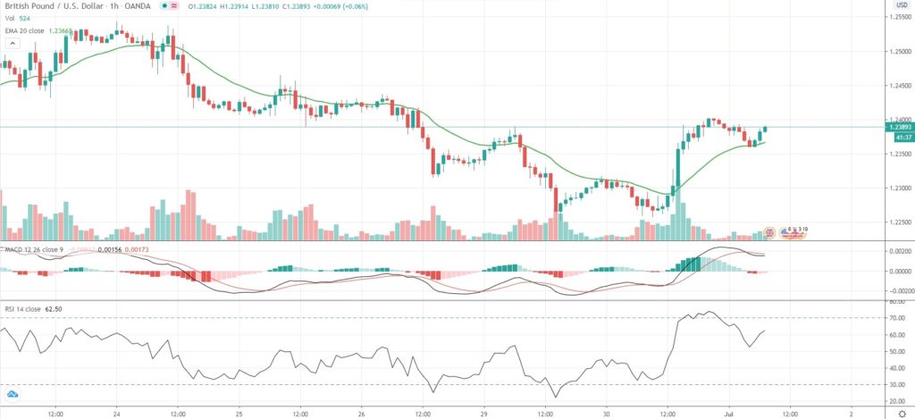 As of 7:17 GMT on Wednesday GBP/USD was inching down 0.09% to trade at 1.2390, after touching an intraday high of 1.2401 in early Asian session. The major pair has erased earlier losses, being up 0.43% for the week, following three successive weeks of decline.