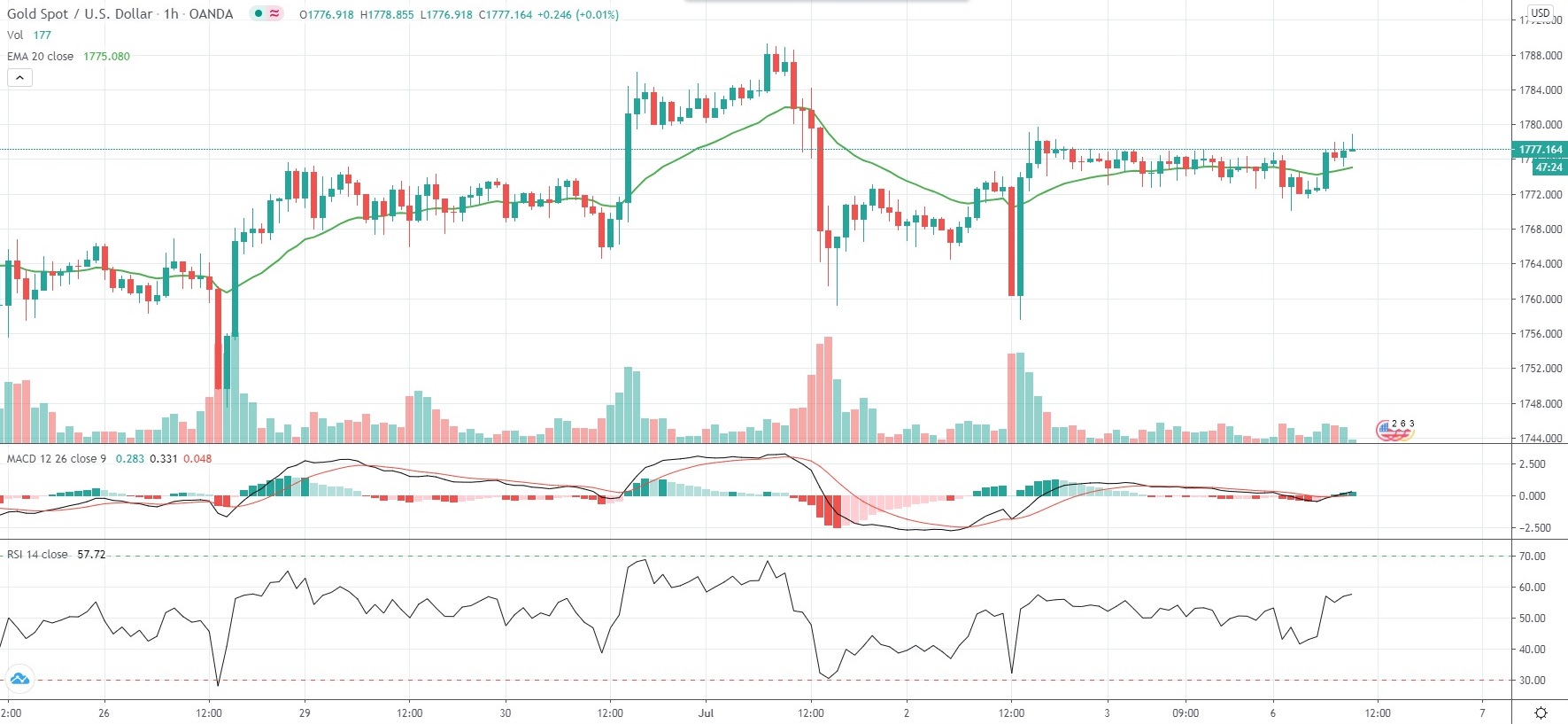 As of 9:34 GMT on Monday Spot Gold was edging up 0.06% to trade at $1,776.23 per troy ounce, while moving within a daily range of $1,770.10-$1,778.86. Meanwhile, Gold futures for delivery in August were edging down 0.20% on the day to trade at $1,786.35 per troy ounce, while Silver futures for delivery in September were up 0.76% to trade at $18.462 per troy ounce.