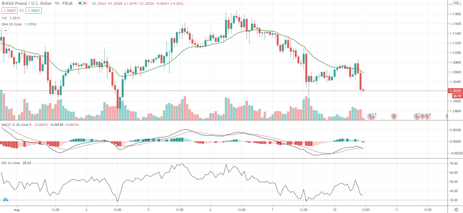 As of 11:15 GMT on Monday GBP/USD was edging down 0.17% to trade at 1.3026, while moving within a daily range of 1.3019-1.3087. The major pair advanced 5.52% in July, while marking a second straight month of gains and its best monthly performance since May 2009. The pair lost 0.22% during the first week of August.