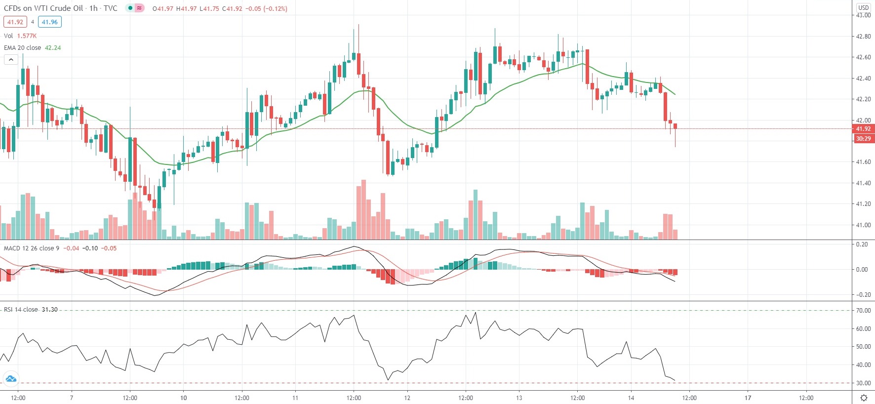 As of 9:23 GMT on Friday WTI Crude Oil Futures were losing 1.23% to trade at $41.82 per barrel, while moving within a daily range of $41.79-$42.55. WTI Crude Futures rose 1.54% in July, which marked their third straight month of gains. US Oil has risen 0.78% so far this week.