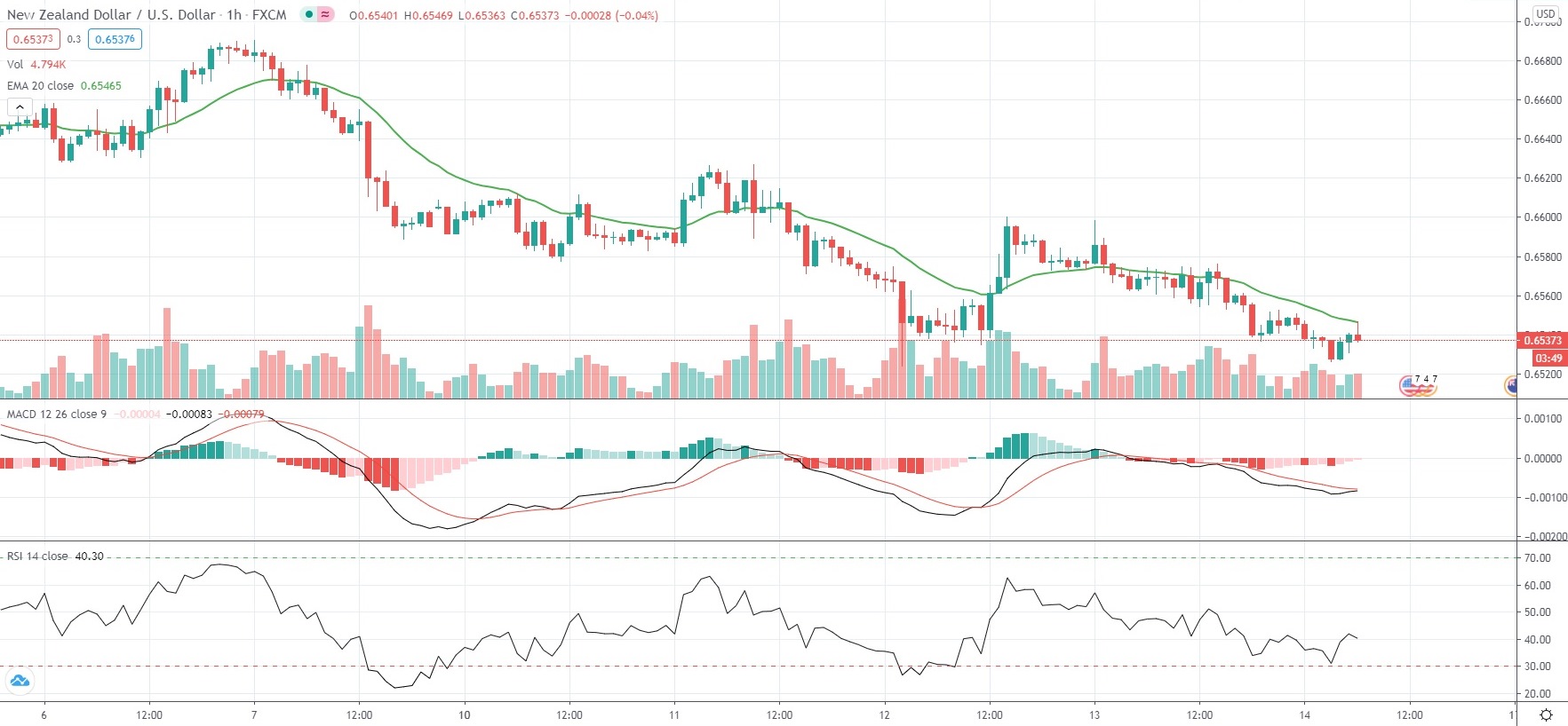 As of 7:01 GMT on Friday NZD/USD was edging down 0.14% to trade at 0.6538, after earlier touching an intraday low of 0.6526, or a level not seen since August 12th (0.6524) – also a one-month low. The major pair advanced 2.70% in July, which marked its fourth straight month of gains. The pair is set for a third consecutive week of losses, currently being down 0.86%.