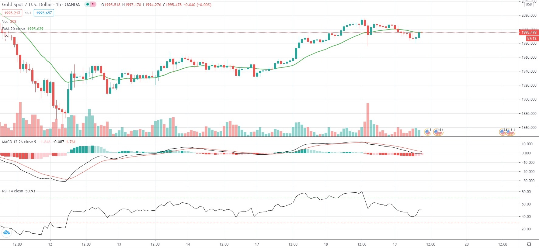 Having touched a fresh one-week high on Tuesday, Spot Gold eased back below the $2,000 mark on Wednesday as the US Dollar steadied near lows last seen in early May 2018 ahead of the release of the latest FOMC Minutes.