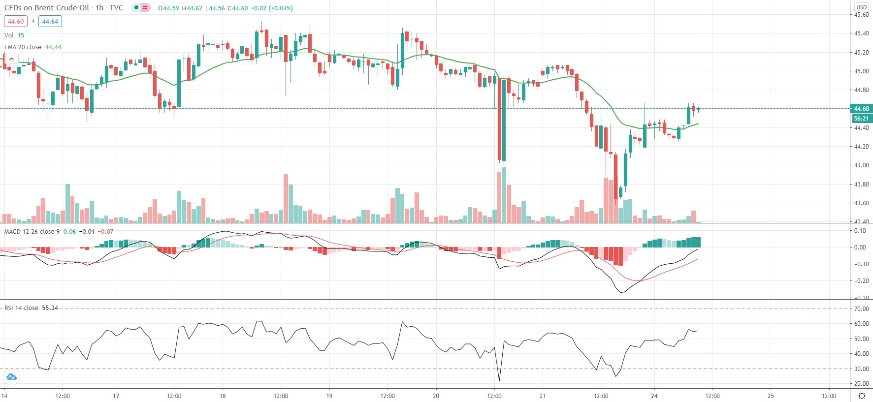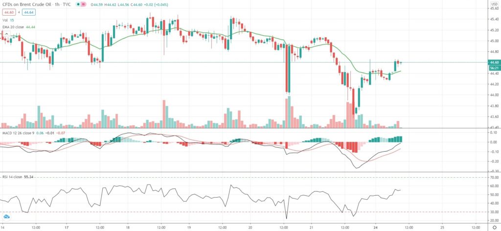 Brent Oil Futures were gaining 0.77% on the day to trade at $44.60 per barrel, while moving within a daily range of $44.19-$44.66. Brent Oil Futures rose 4.86% in July, which marked their fourth consecutive month of advance. UK Oil has risen another 2.32% so far in August.