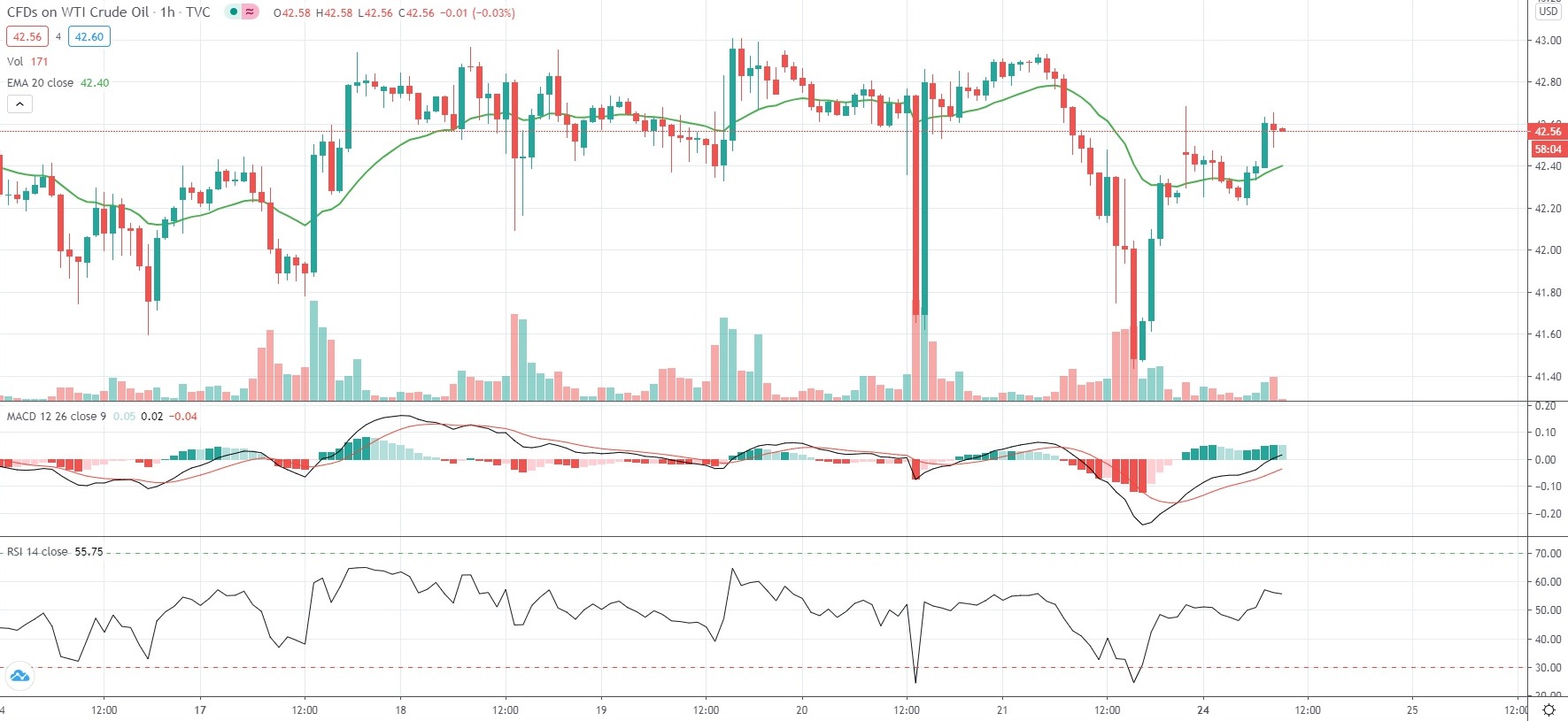As of 9:01 GMT on Monday WTI Crude Oil Futures were gaining 0.71% to trade at $42.57 per barrel, while moving within a daily range of $42.26-$42.68. WTI Crude Futures rose 1.54% in July, which marked their third straight month of gains. US Oil has risen another 5.28% so far in August.