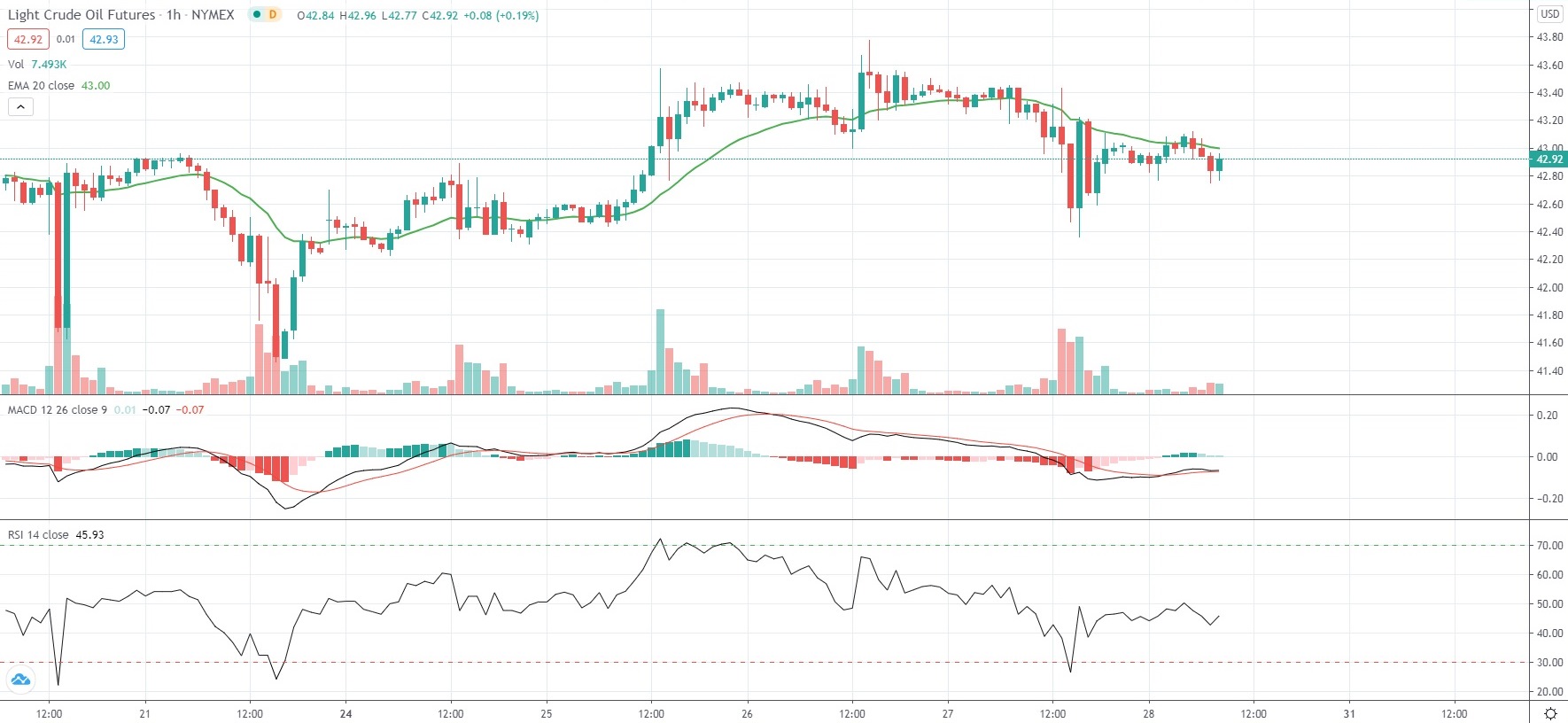 As of 9:04 GMT on Friday WTI Crude Oil Futures were edging down 0.26% to trade at $42.93 per barrel, while moving within a daily range of $42.75-$43.12. WTI Crude Futures have risen 6.58% so far in August, while being poised for a fourth straight month of gains.