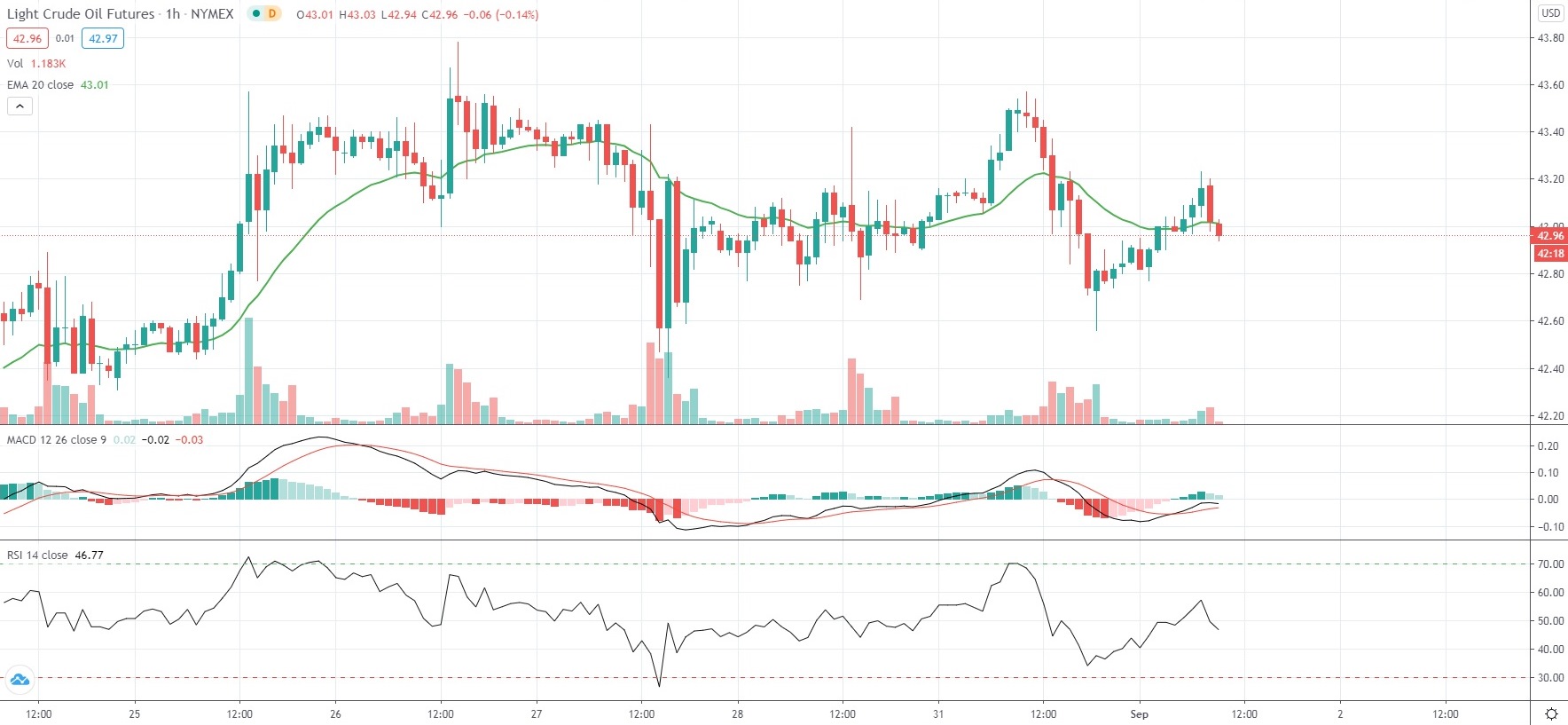 As of 9:15 GMT on Tuesday WTI Crude Oil Futures were gaining 0.89% to trade at $42.99 per barrel, while moving within a daily range of $42.77-$43.23. WTI Crude Futures rose 5.81% in August, while marking their fourth straight month of gains.