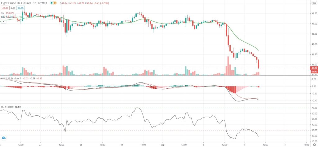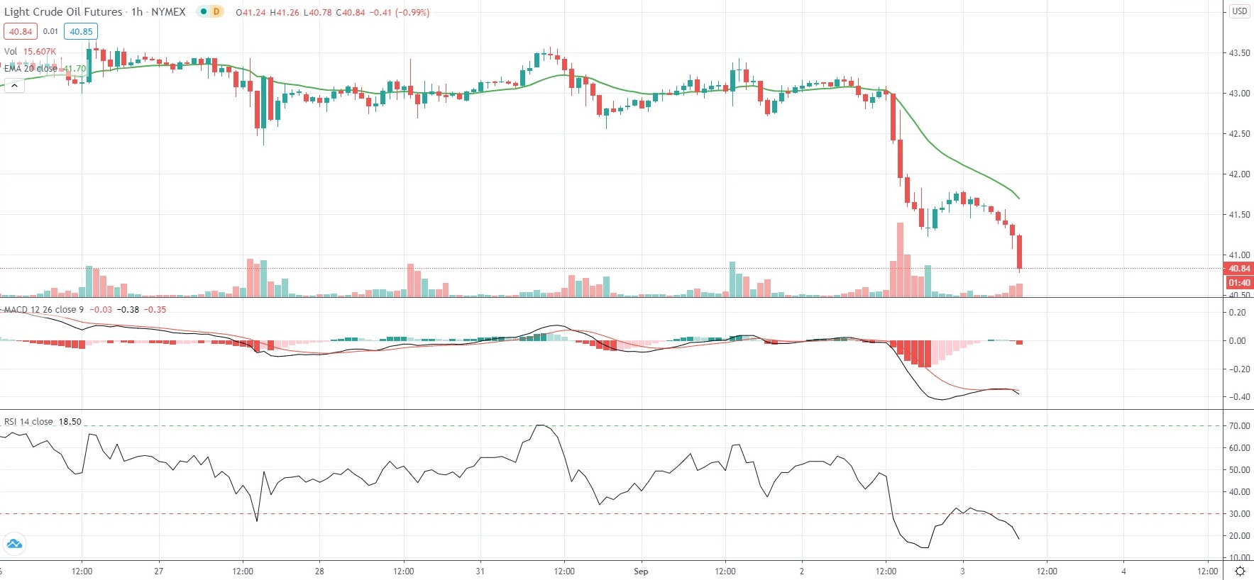 As of 9:00 GMT on Thursday WTI Crude Oil Futures were retreating 1.59% to trade at $40.85 per barrel, after earlier touching an intraday low at $40.78, or a price level not seen since August 4th ($40.14). WTI Crude Futures rose 5.81% in August, while marking their fourth straight month of gains.