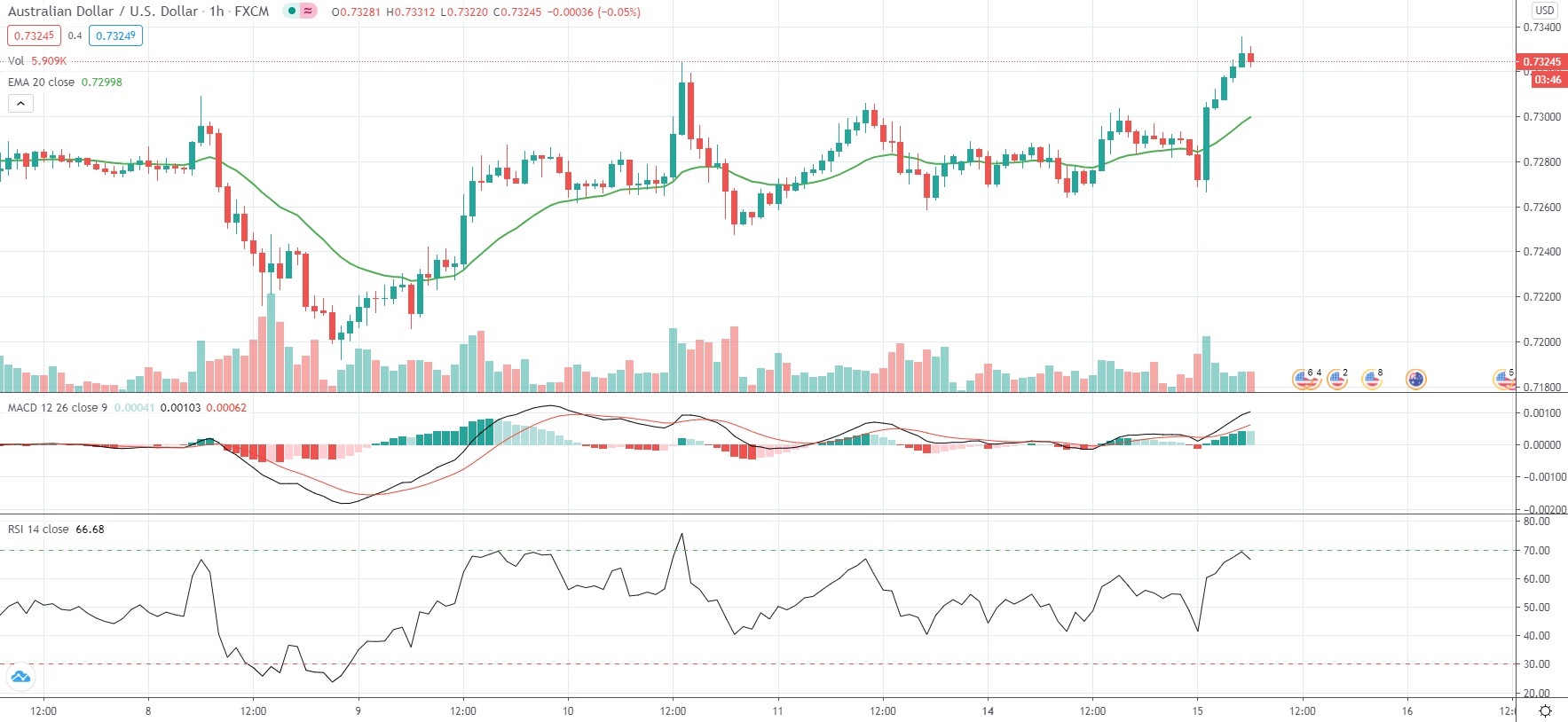 As of 6:55 GMT on Tuesday AUD/USD was gaining 0.51% to trade at 0.7325, after earlier touching an intraday high of 0.7336, or its strongest level since September 3rd (0.7339). The major pair has retreated 0.68% so far in September, following five consecutive months of gains.
