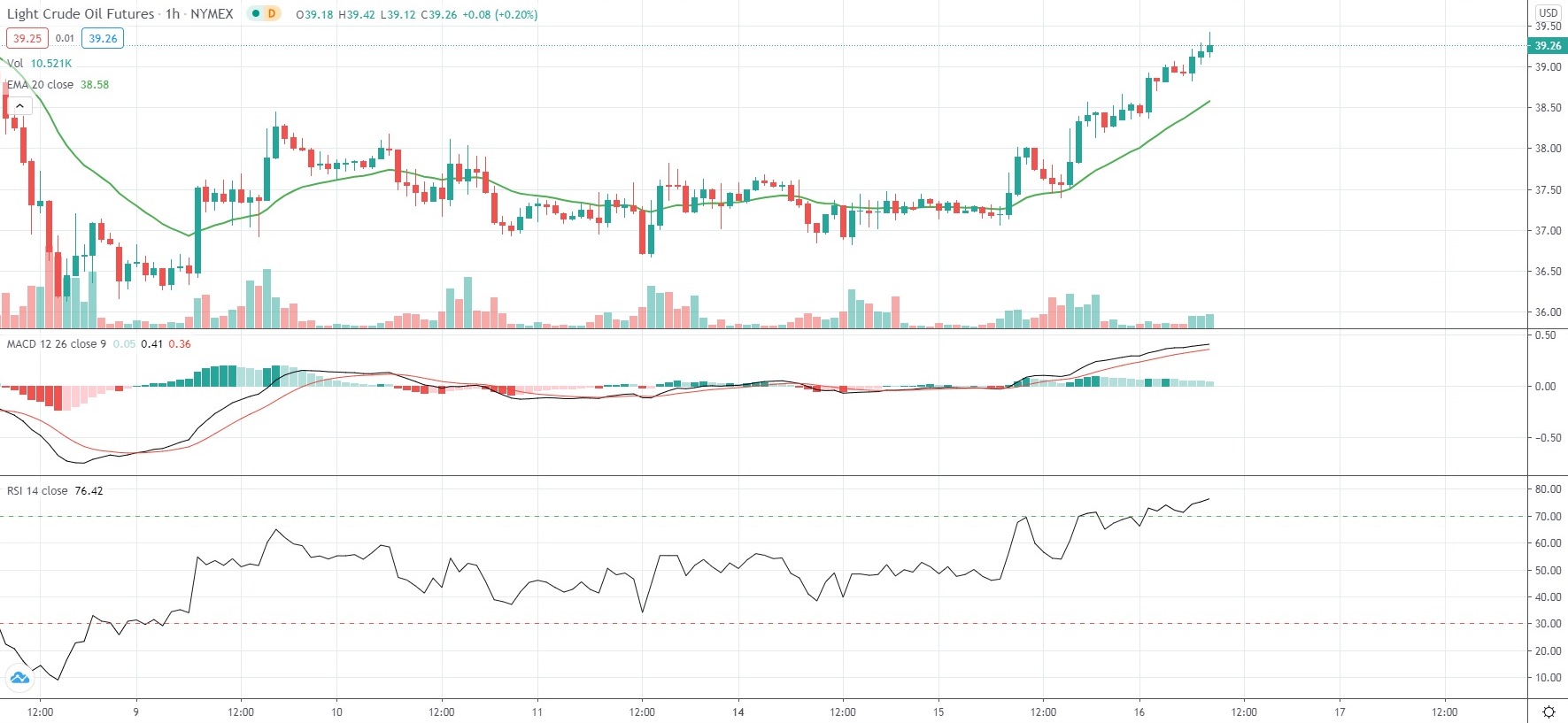 As of 9:00 GMT on Wednesday WTI Crude Oil Futures were gaining 2.66% to trade at $39.30 per barrel, after earlier touching an intraday high at $39.42, or its strongest level since September 8th ($39.59). WTI Crude Futures have retreated 7.86% so far in September, following four straight months of gains.