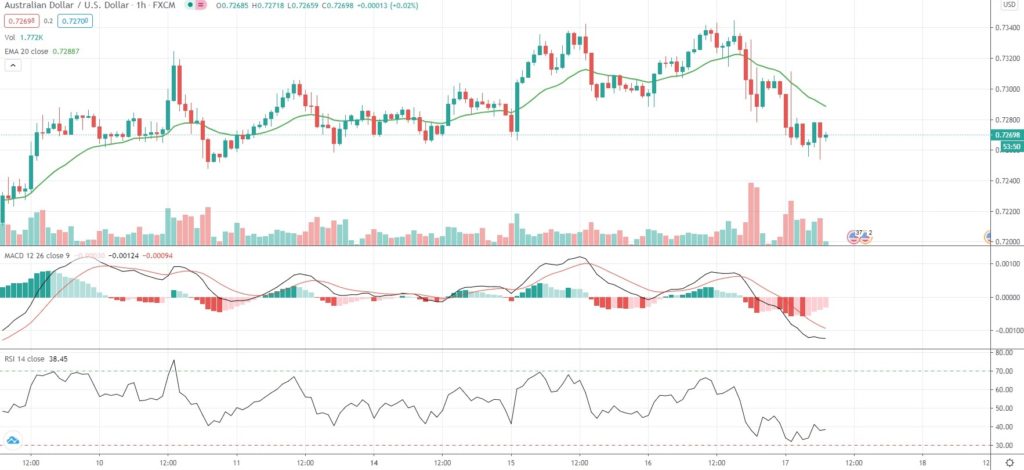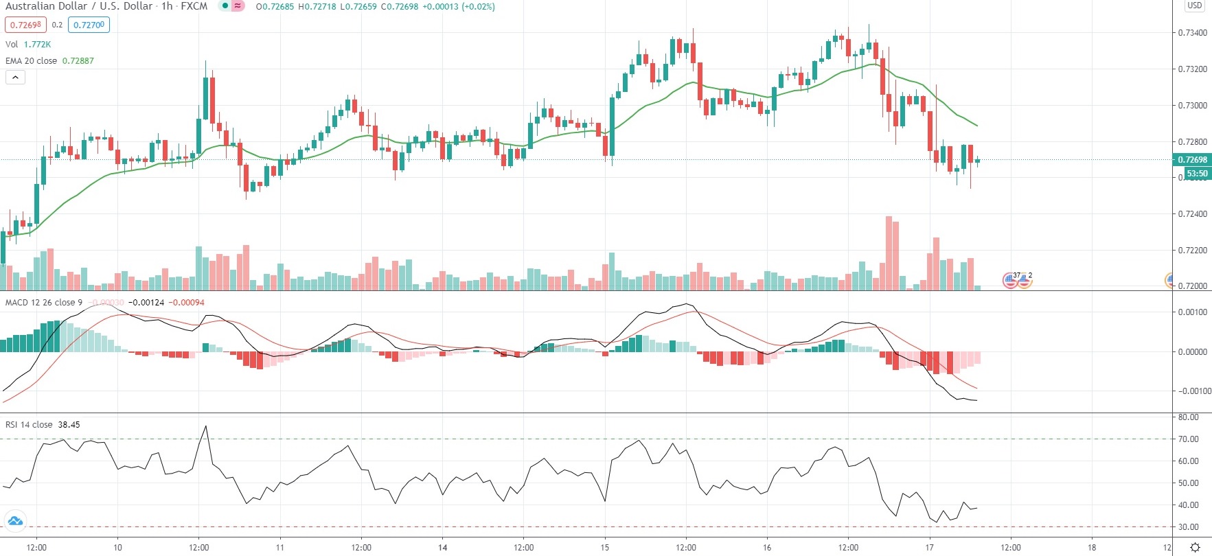 As of 7:00 GMT on Thursday AUD/USD was retreating 0.52% to trade at 0.7267, after earlier touching an intraday low of 0.7254, or a level not seen since September 11th (0.7252). Yesterday it climbed as high as 0.7345, a two-week high. The major pair has retreated 1.44% so far in September, following five consecutive months of gains.