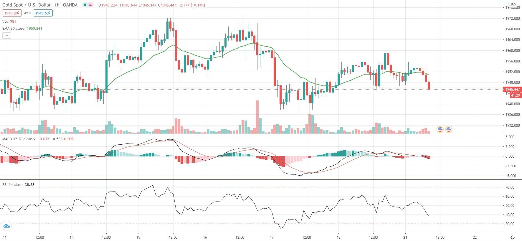As of 8:18 GMT on Monday Spot Gold was edging down 0.25% to trade at $1,945.70 per troy ounce, while moving within a daily range of $1,944.84-$1,955.62. Last week the commodity rose as high as $1,973.78, its strongest level since September 1st. The precious metal has dropped 1.24% so far in September, following a 0.42% loss in August.