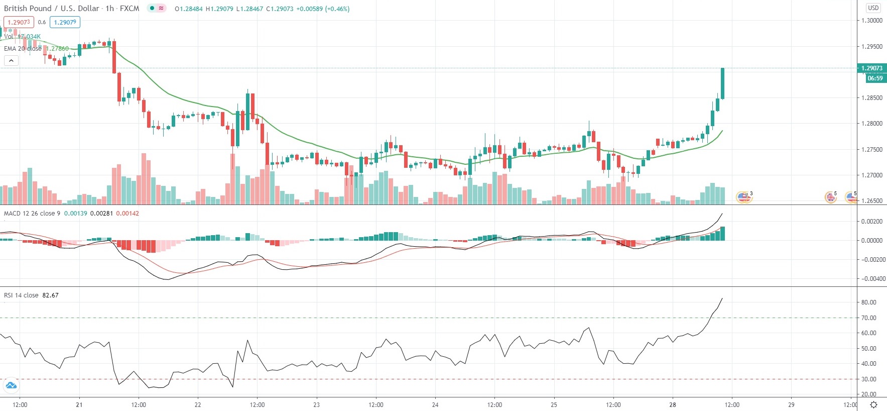 GBP/USD hit a fresh one-week high during late European session on Monday, supported by investor optimism that the UK could strike a post-Brexit trade deal with the EU by next month, or at least avoid a messy departure from the political and economic union.
