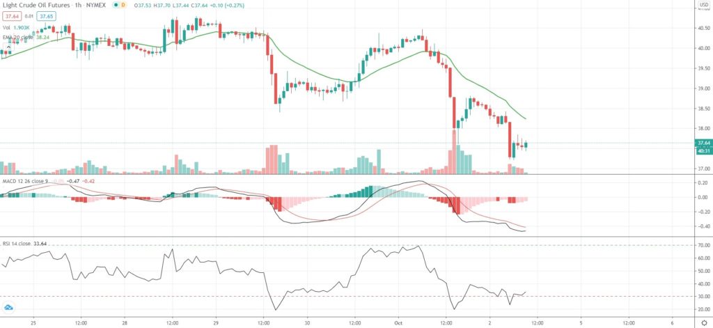 Risk sentiment soured, mounting additional pressure on oil market, after President Trump said in a tweet that he and first lady Melania would go into quarantine to begin process of recovery. Reports stated that Hope Hicks, a senior advisor who had recently traveled with the president, tested positive for COVID-19 earlier.