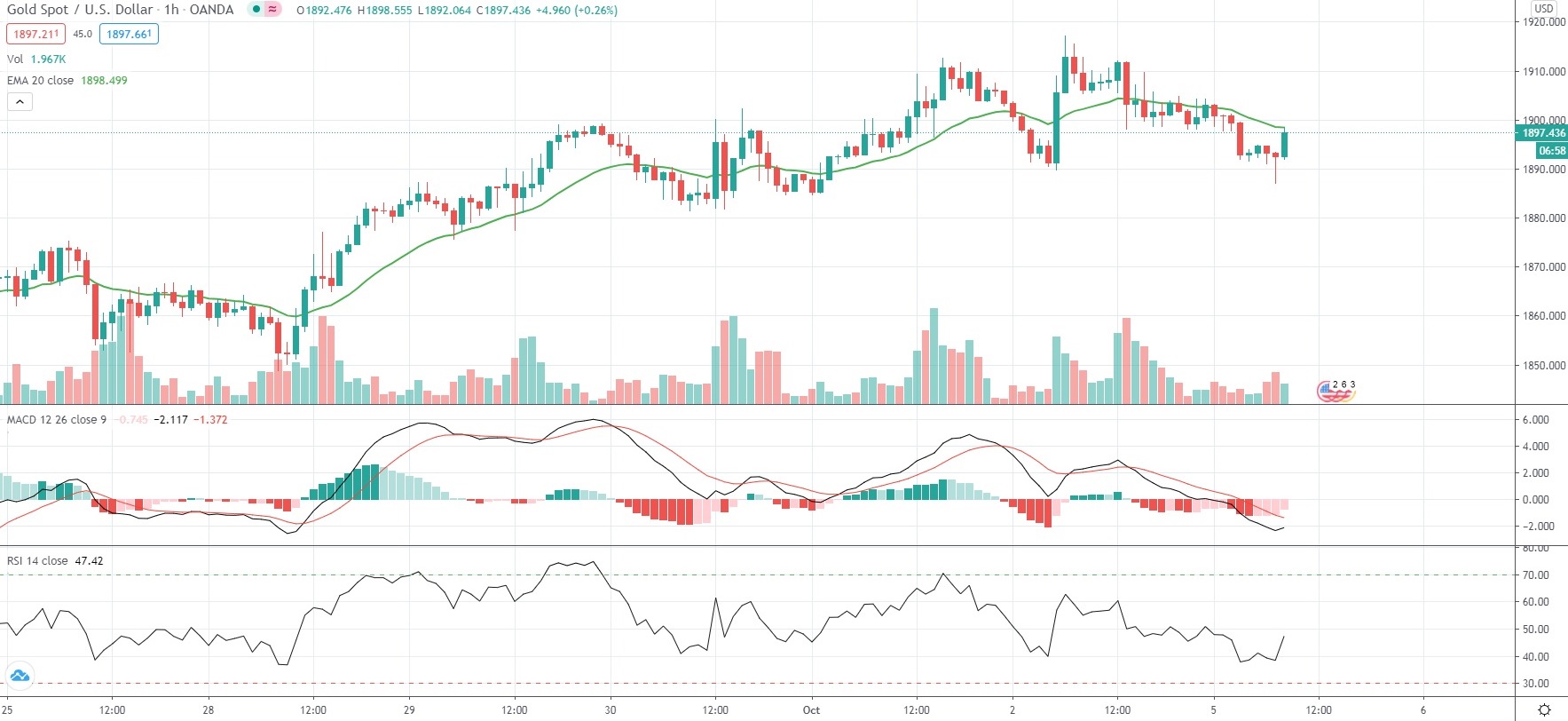 As of 8:52 GMT on Monday Spot Gold was edging down 0.10% to trade at $1,897.36 per troy ounce, while moving within a daily range of $1,887.13-$1,904.35 per troy ounce. The commodity has risen 0.78% so far in October, following a 4.17% slump in September, its worst performance since November 2016.