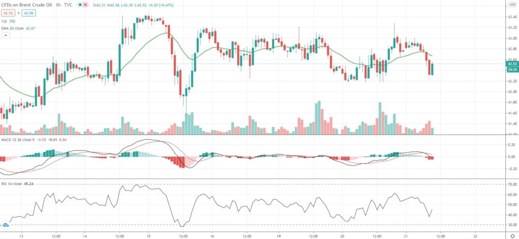 Brent Oil Futures were losing 0.58% on the day to trade at $42.52 per barrel, while moving within a daily range of $42.34-$43.02 per barrel. Brent Oil Futures have risen 0.90% so far in October, following a 7.55% loss in September.