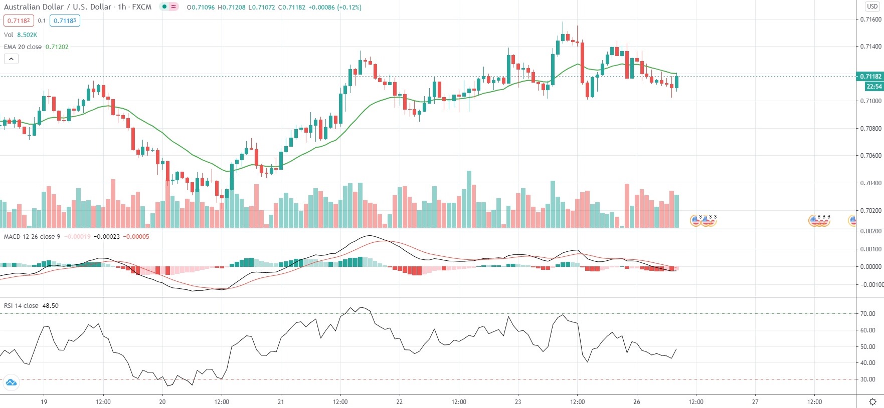 As of 8:33 GMT on Monday AUD/USD was edging down 0.19% to trade at 0.7119, while easing from last Friday’s one-week high of 0.7158. The major pair has dropped 0.59% so far in October, after retreating 2.91% in September, its first monthly loss since March.
