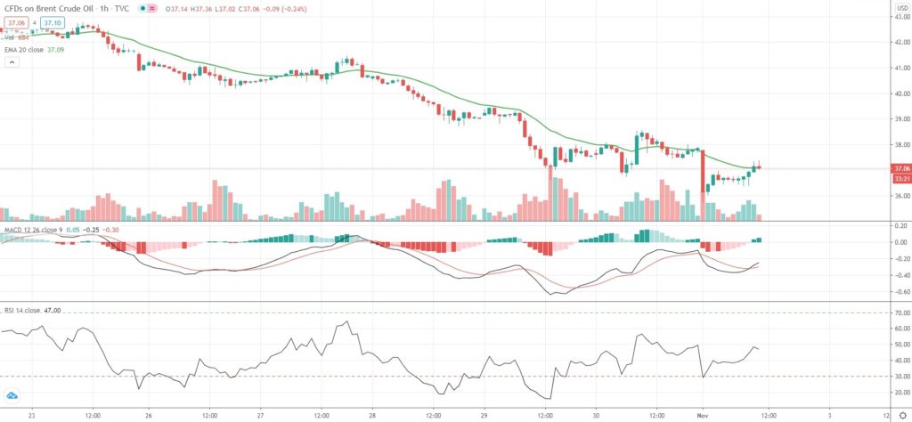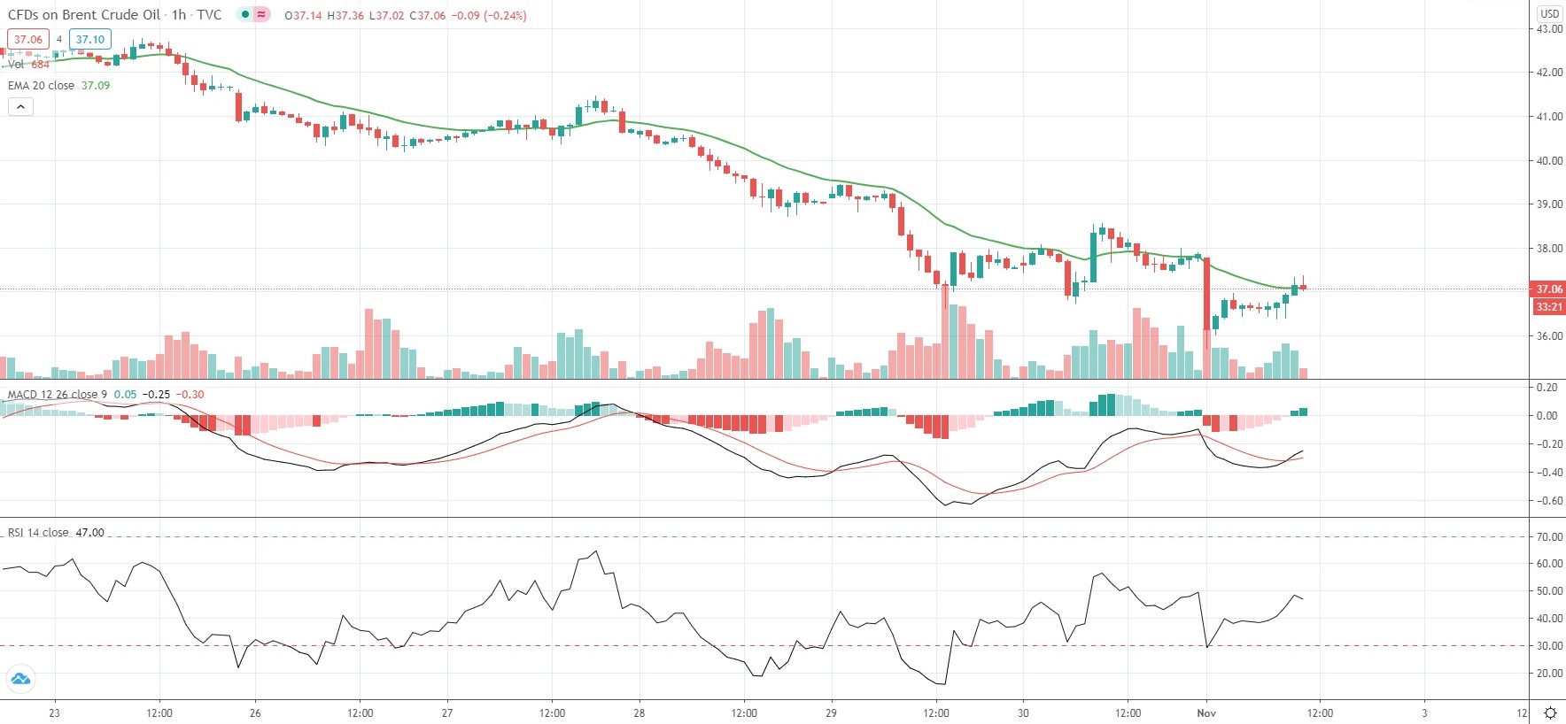 Brent Oil Futures were losing 2.11% on the day to trade at $37.06 per barrel, after earlier touching an intraday low of $35.76 per barrel, or a price level not seen since May 29th ($34.70).
