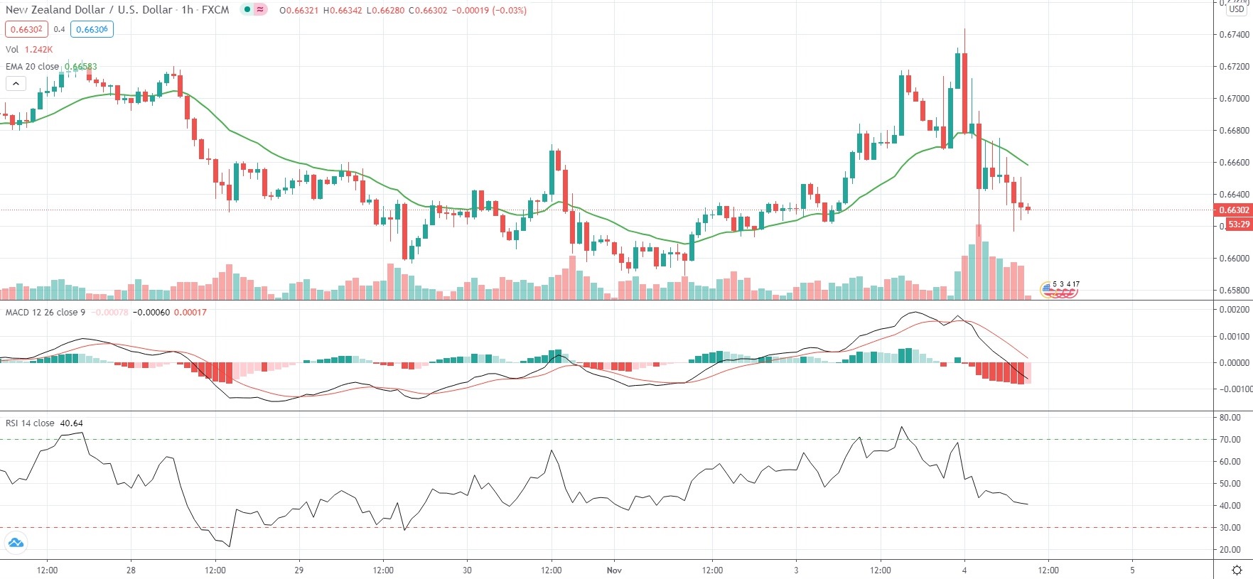 NZD/USD, along with other risk-sensitive assets, retreated sharply on Wednesday, as early results from the US presidential election revealed a tight race while market players were prompted to wind back bets on Biden victory.