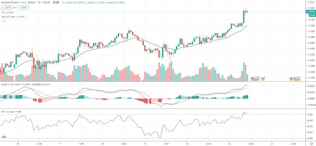 As of 10:23 GMT on Monday GBP/USD was gaining 0.65% to trade at 1.3369, after earlier touching an intraday high of 1.3381, or its strongest level since September 2nd (1.3403). The major pair has risen 3.28% so far in November, following another 0.26% gain in October.