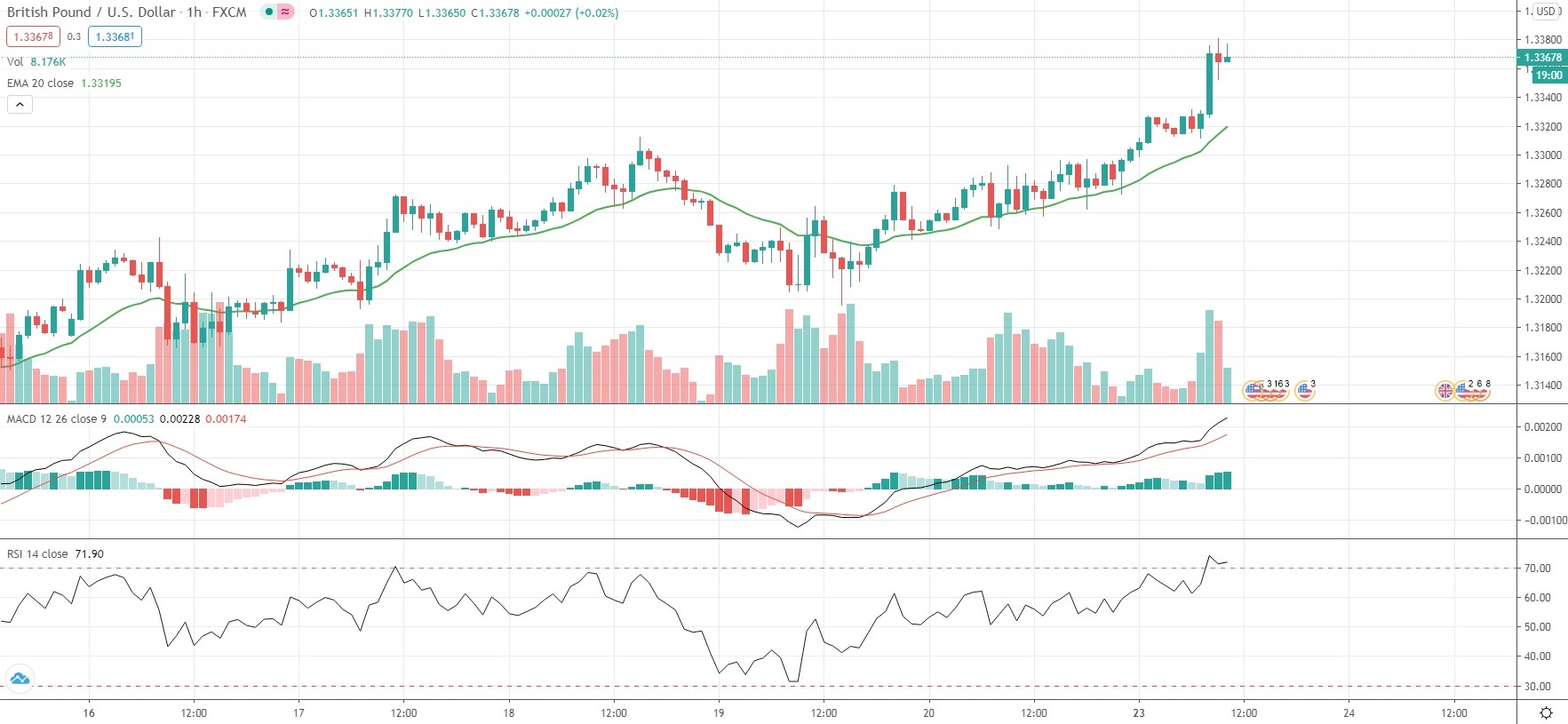 As of 10:23 GMT on Monday GBP/USD was gaining 0.65% to trade at 1.3369, after earlier touching an intraday high of 1.3381, or its strongest level since September 2nd (1.3403). The major pair has risen 3.28% so far in November, following another 0.26% gain in October.
