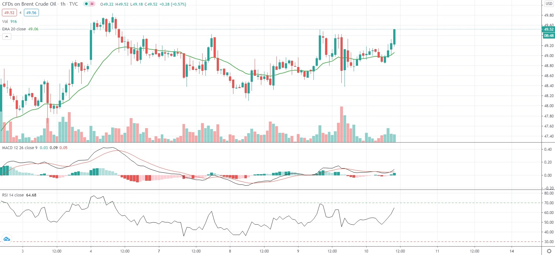 Brent Oil Futures were gaining 0.86% on the day to trade at $49.44 per barrel, while moving within a daily range of $48.88-$49.54 per barrel. Brent Oil Futures have risen 3.99% so far in December, following another 25.83% surge in November, or the biggest since May.