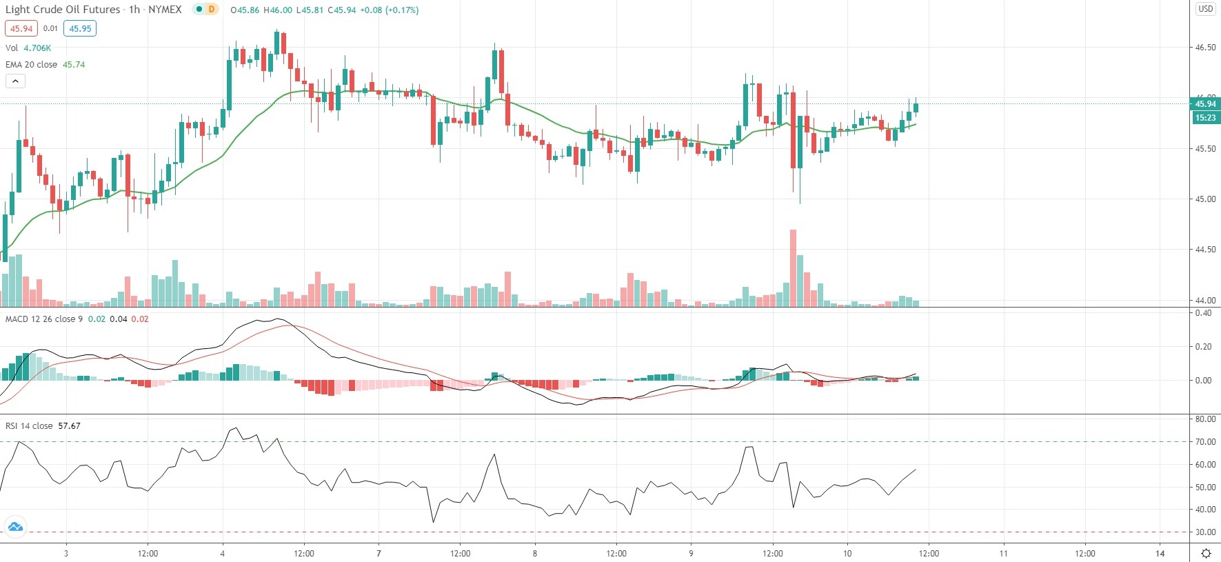 As of 10:47 GMT on Thursday WTI Crude Oil Futures were gaining 1.03% to trade at $45.99 per barrel, while moving within a daily range of $45.52-$46.00 per barrel. WTI Crude Oil Futures have risen 1.43% so far in December, following another 26.68% surge in November, the biggest since May.