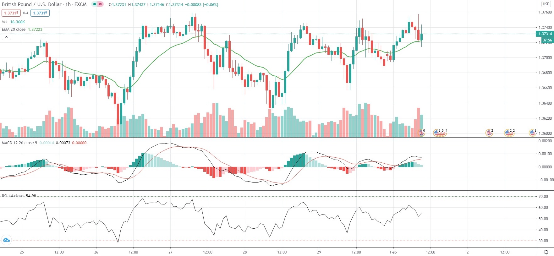 As of 9:50 GMT on Monday GBP/USD was edging up 0.31% to trade at 1.3731, while moving within a daily range of 1.3694-1.3758. Last Wednesday the pair climbed as high as 1.3759, or its strongest level since May 1st 2018 (1.3773). The major pair rose 0.24% in January, which marked a fourth consecutive month of advance.