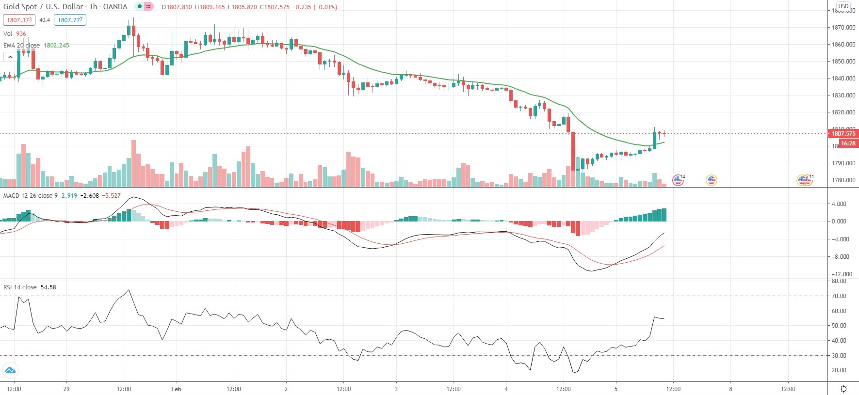 As of 10:41 GMT on Friday Spot Gold was advancing 0.75% to trade at $1,807.40 per troy ounce, while moving within a daily range of $1,792.13-$1,811.32 per troy ounce. Yesterday the precious metal slipped as low as $1,785.02, or its weakest price level since December 1st 2020 ($1,775.90 per troy ounce). The commodity retreated 2.67% in January.