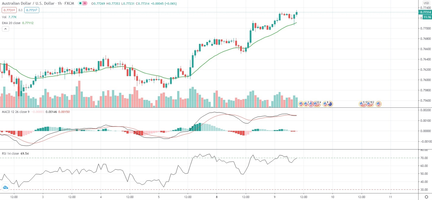 “Both currencies today are reacting to the very strong session overnight in U.S. equities, oil and precious metals, and then the local data have really boosted both Aussie and the Kiwi,” Steven Dooley, APAC currency strategist at Western Union Business Solutions, was quoted as saying by Reuters.