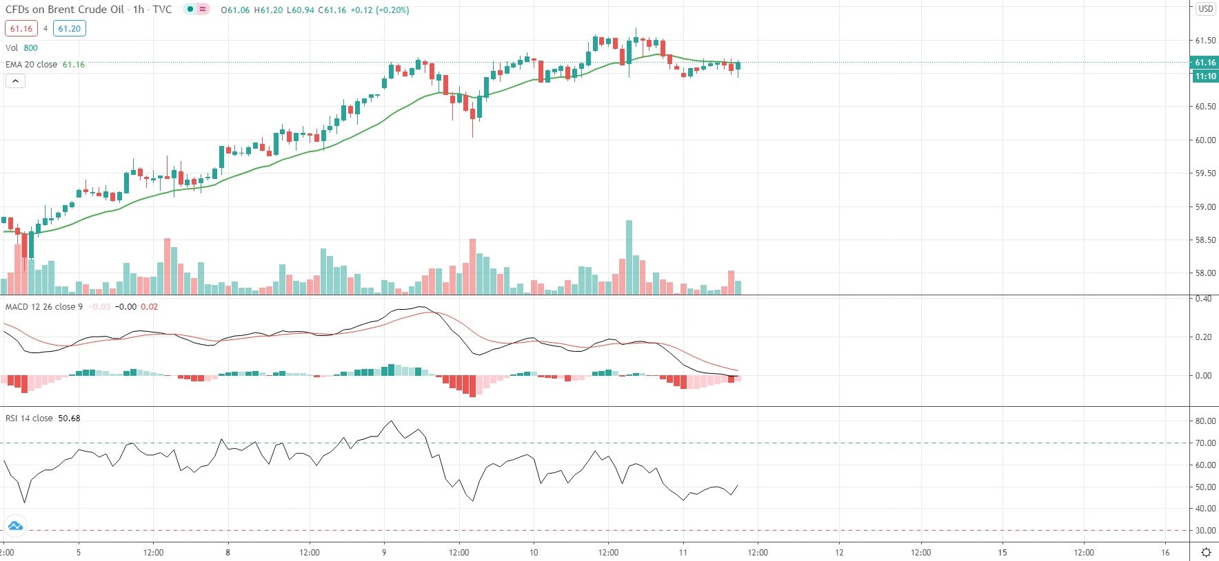 Brent Oil Futures were inching up 0.05% on the day to trade at $61.17 per barrel, while moving within a daily range of $60.97-$61.22 per barrel. Yesterday the commodity climbed as high as $61.68, or its strongest price level since January 24th 2020 ($62.44 per barrel). Brent Oil Futures have risen 11.20% so far in February, following another 6.38% surge in January.