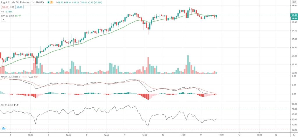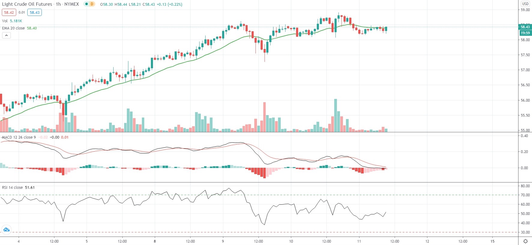 As of 9:50 GMT on Thursday WTI Crude Oil Futures were edging down 0.43% to trade at $58.43 per barrel, while moving within a daily range of $58.17-$58.47 per barrel. Yesterday the commodity climbed as high as $58.91, or its strongest price level since January 21st 2020 ($59.77 per barrel). WTI Crude Oil Futures have risen 11.84% so far in February, following another 7.58% surge in January.