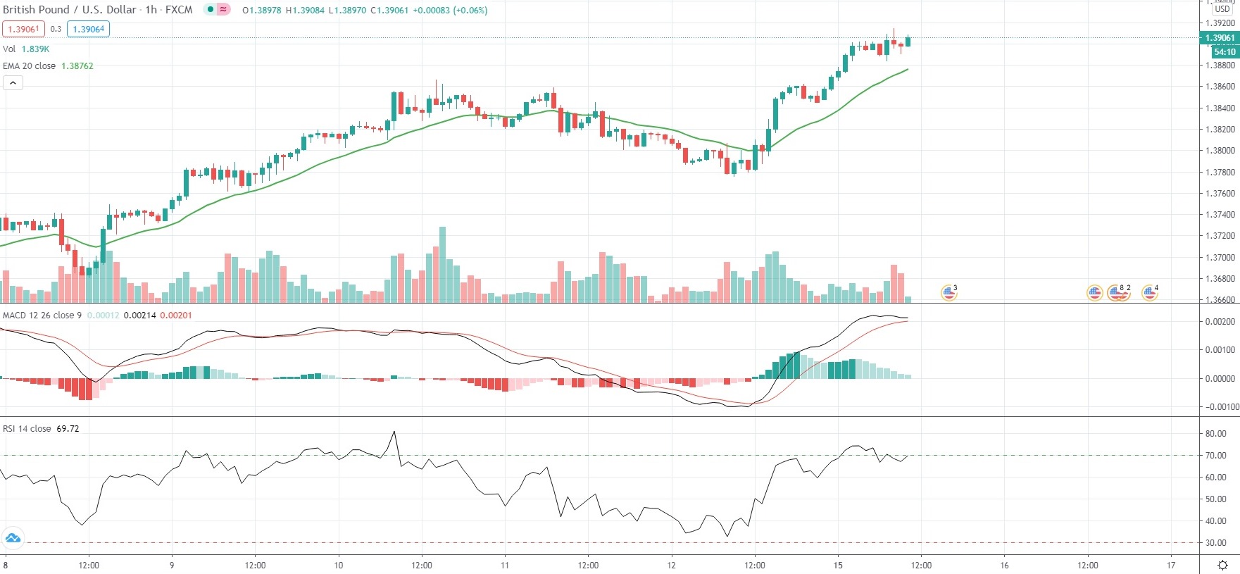 As of 10:02 GMT on Monday GBP/USD was edging up 0.42% to trade at 1.3903, after earlier touching an intraday high at 1.3914, or its strongest level since April 27th 2018 (1.3935). The major pair has gained 1.59% so far in February, following another 0.24% advance in January.