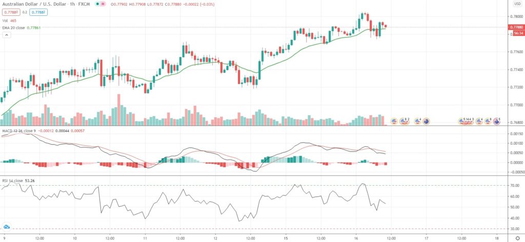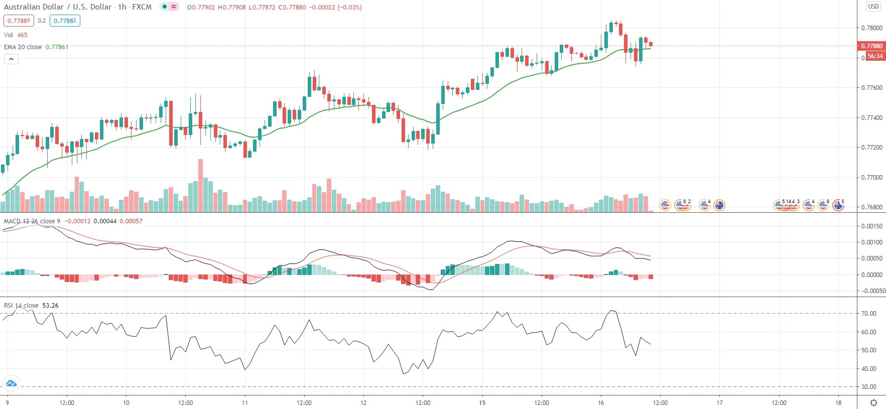 As of 10:11 GMT on Tuesday AUD/USD was edging up 0.13% to trade at 0.7789, after earlier touching an intraday high of 0.7805, or its strongest level since January 14th (0.7805). The major pair has risen 1.96% so far in February, following a 0.81% drop in January.