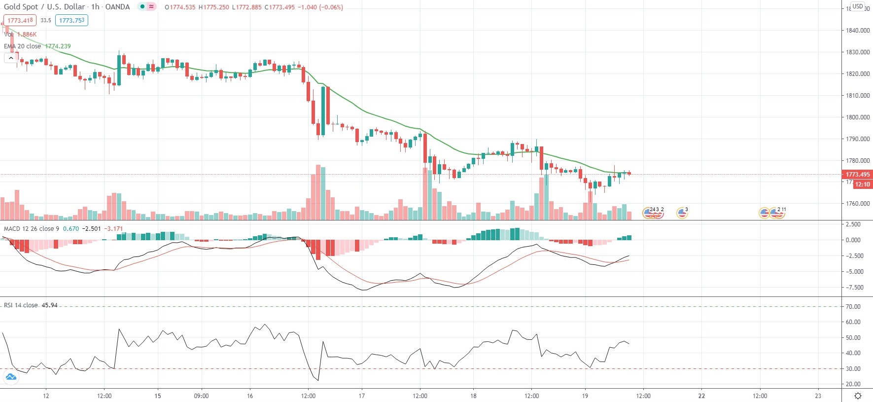 As of 10:12 GMT on Friday Spot Gold was edging down 0.30% to trade at $1,770.63 per troy ounce, after earlier touching an intraday low of $1,760.75 per troy ounce, or its weakest price level since July 2nd 2020 ($1,757.66 per troy ounce). The commodity has retreated 3.96% so far in February, following another 2.67% drop in January.