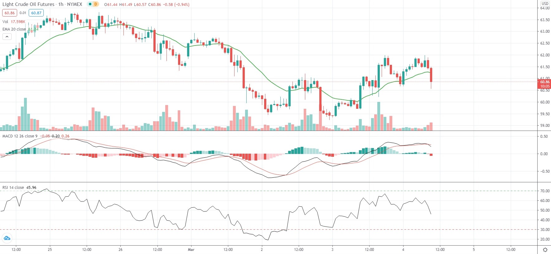 As of 9:14 GMT on Thursday WTI Crude Oil Futures were edging up 0.13% to trade at $61.36 per barrel, while moving within a daily range of $60.67-$61.98 per barrel. Prices rebounded from $59.24 per barrel, or WTI’s weakest level since February 22nd ($58.82 per barrel). Still, WTI Crude Oil Futures have retreated 1.15% so far in March, following a 17.82% surge in February.