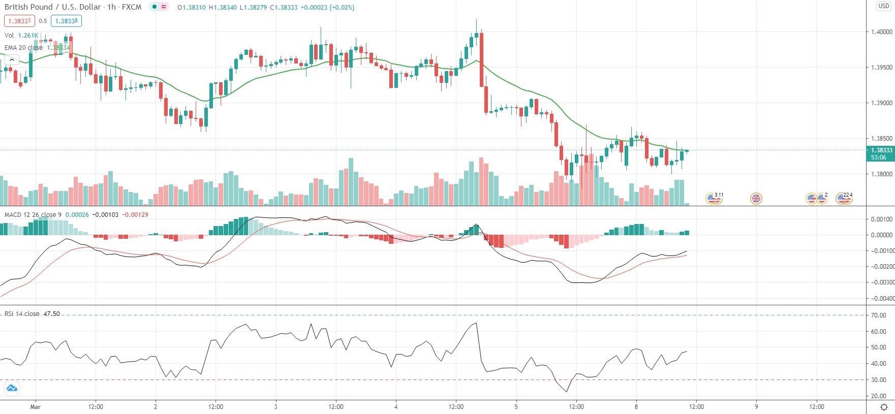 As of 10:01 GMT on Monday GBP/USD was inching up 0.02% to trade at 1.3833, while moving within a daily range of 1.3800-1.3866. Last Friday the major pair slipped as low as 1.3778, or its weakest level since February 12th (1.3776). The currency pair has retreated 0.67% so far in March, following a 1.71% gain in February.