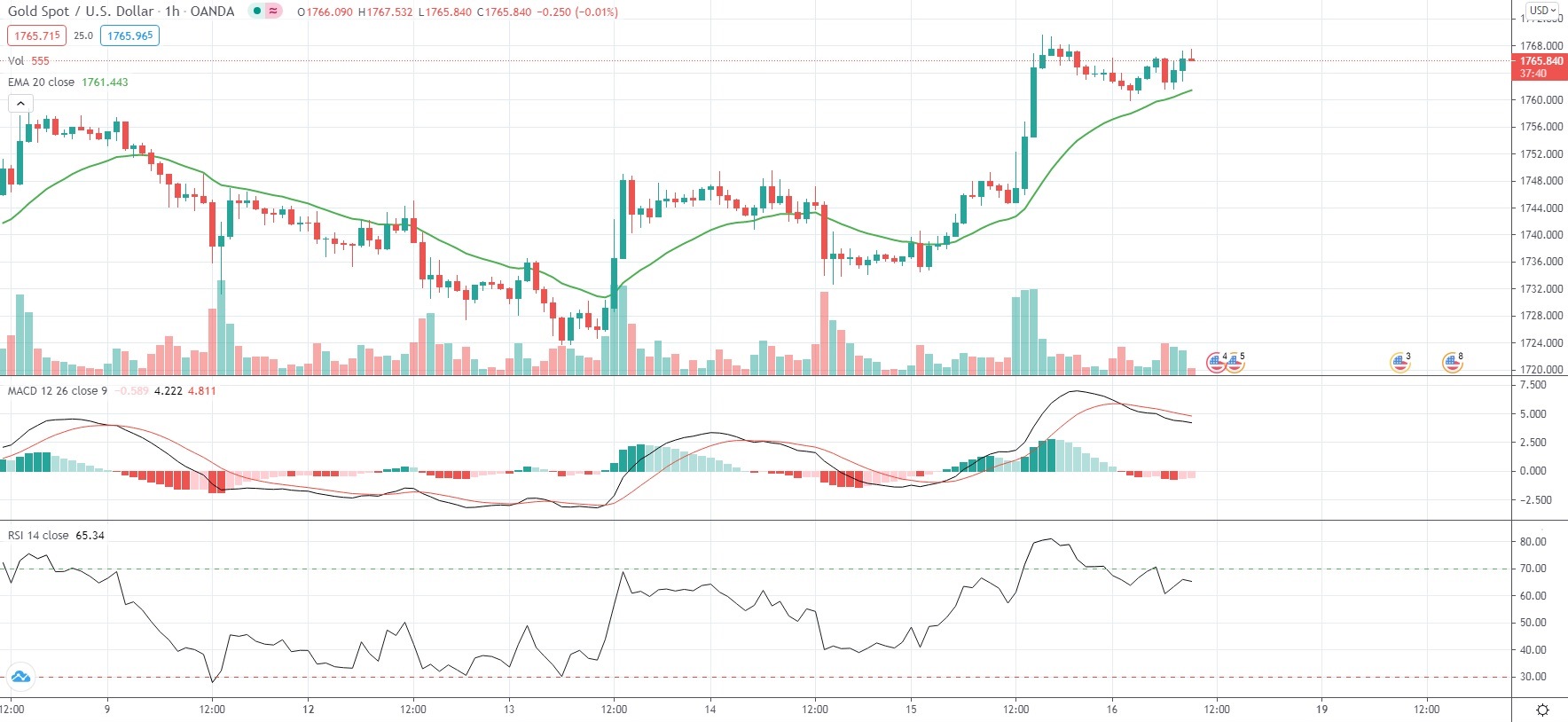 As of 9:15 GMT on Friday Spot Gold was edging up 0.15% to trade at $1,766.43 per troy ounce, while moving within a daily range of $1,759.92-$1,767.53 per troy ounce. Yesterday it rose as high as $1,769.66 per troy ounce, which has been its strongest price level since February 26th ($1,775.90 per troy ounce).