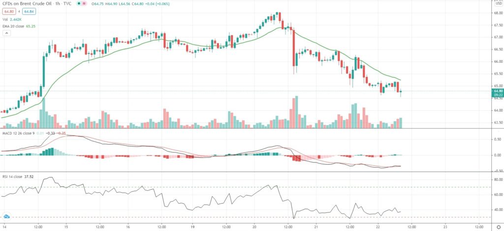 Brent Oil Futures were edging down 0.34% on the day to trade at $64.82 per barrel, after earlier touching an intraday low at $64.60, or their weakest price level since April 14th ($63.90 per barrel). Brent Oil Futures have risen 2.95% so far in April, following a 2.14% drop in March.