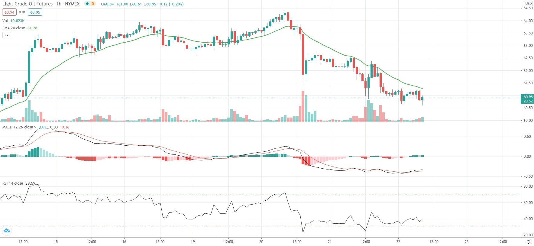 As of 8:48 GMT on Thursday WTI Crude Oil Futures were retreating 0.67% to trade at $60.94 per barrel, after earlier touching an intraday low at $60.61, or their weakest price level since April 14th ($60.38 per barrel). WTI Crude Oil Futures have risen 2.87% so far in April, following a 3.80% drop in March.